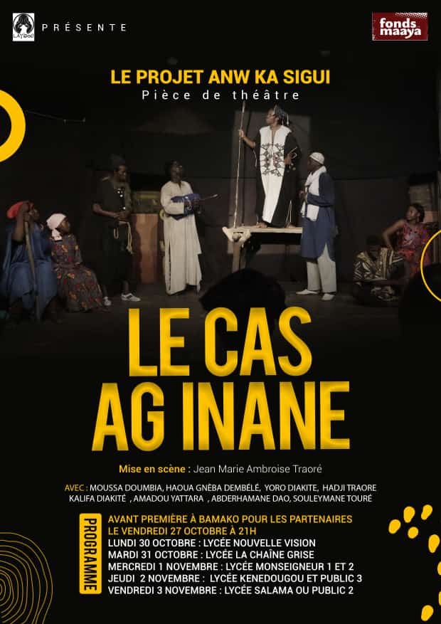 •C’est la reprise de la pièce de théâtre « Le Cas Ag Innane » écrite par BOUBACAR BELCO DIALLO, en 2014, qui traite du sujet du retour des réfugiés chez eux parfois mal vécu par ceux qui sont restés. Dans le cadre du projet Anw Ka Sigui soutenu par le fonds Maays